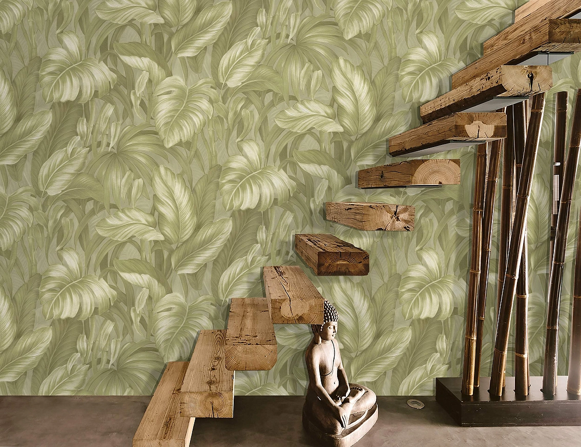 Оливковый цвет обоев идеально подойдет для создания уютной атмосферы в вашем доме. Листья Voyage, яркий элемент декора, придают этим обоям особую изюминку. Раппорт в 64 позволит вам легко и красиво сочетать обои при их укладке.