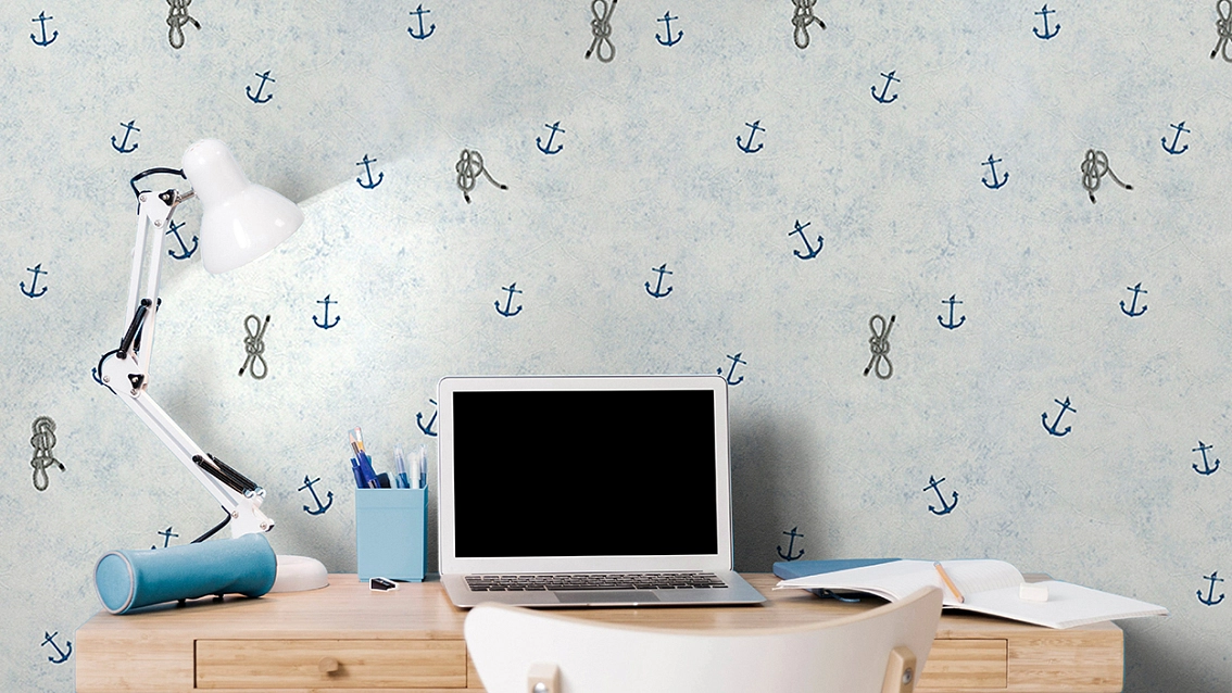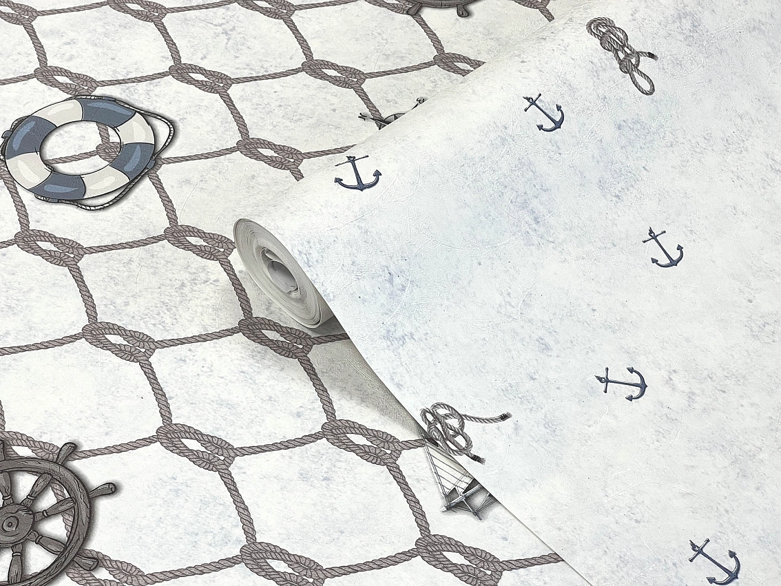 Обои Makario Jolly 3513-1 отлично подойдут для создания уютной атмосферы в детской комнате. Их голубой цвет и мотив якоря Jolly добавят игривости и радости в интерьер.